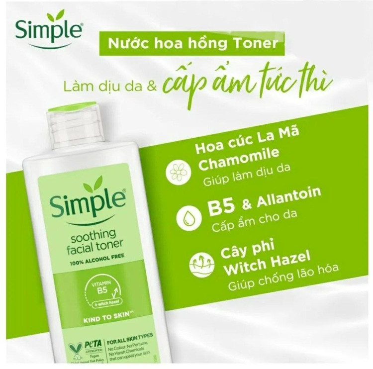 تونر سیمپل حاوی ترکیباتی مثل پرو ویتامین B5، بابونه، فندق افسونگر و آلانتوئین است که دارای خاصیت ضد التهابی و التیام بخشی هستند. این تونر فاقد الکل، عطر، رنگ و مواد شیمیایی خشن با پوست است و هیچ گونه آسیبی به پوست شما وارد نمی کند؛ همچنین غیر کومدون زا است و باعث بروز جوش نمی شود.